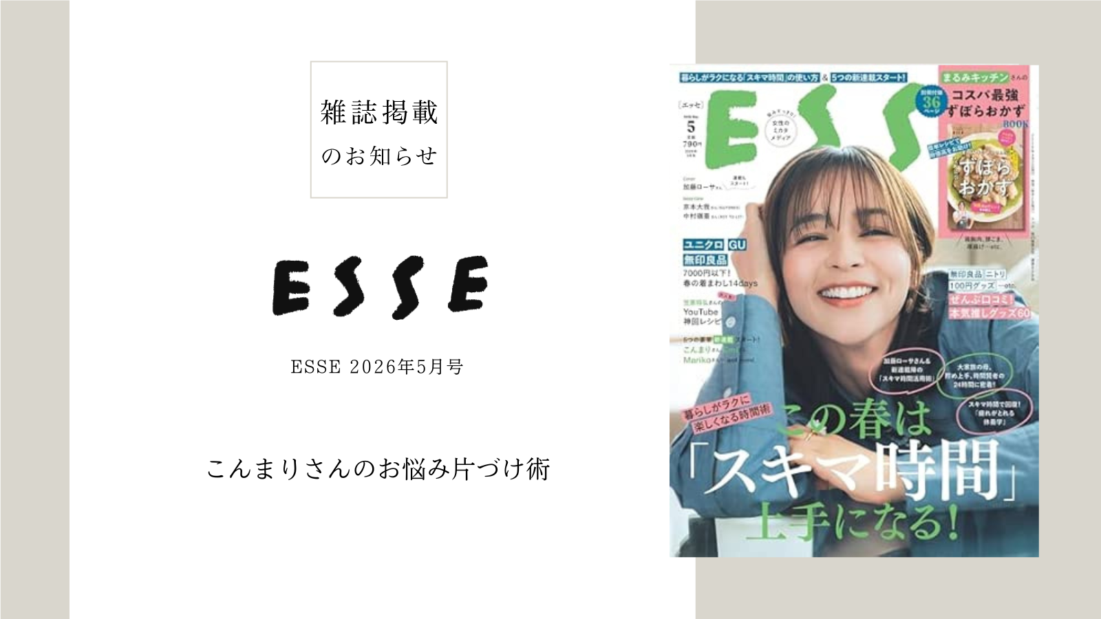 ESSEさんで、近藤麻理恵の新連載がスタートしました!