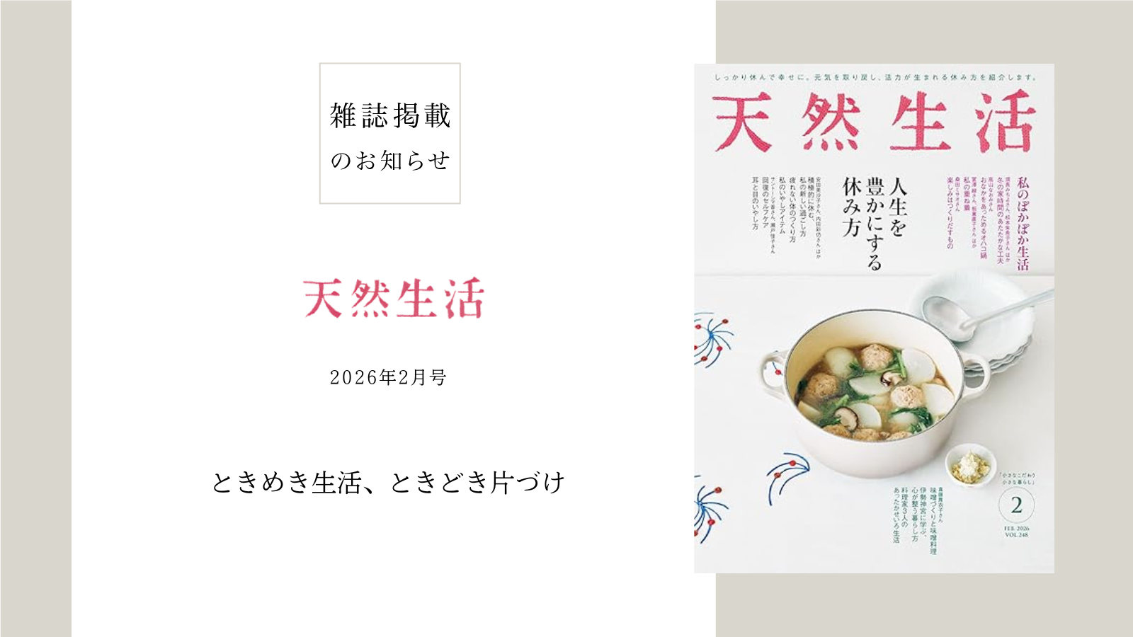 『天然生活2月号』では 近藤麻理恵の隔月連載5回目が掲載されています。